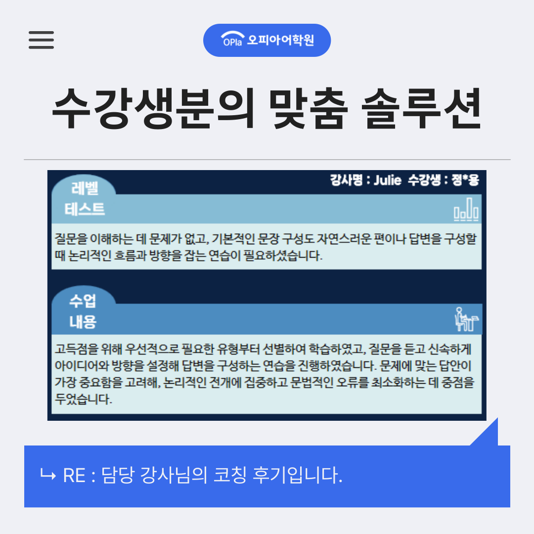 오픽 성적을 확실하게 향상시키고 싶어서 찾아오게 되었습니다! 😊