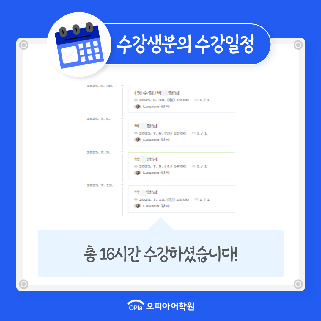 오피아어학원 강남점에서 총 16회 수업을 수강하시고,