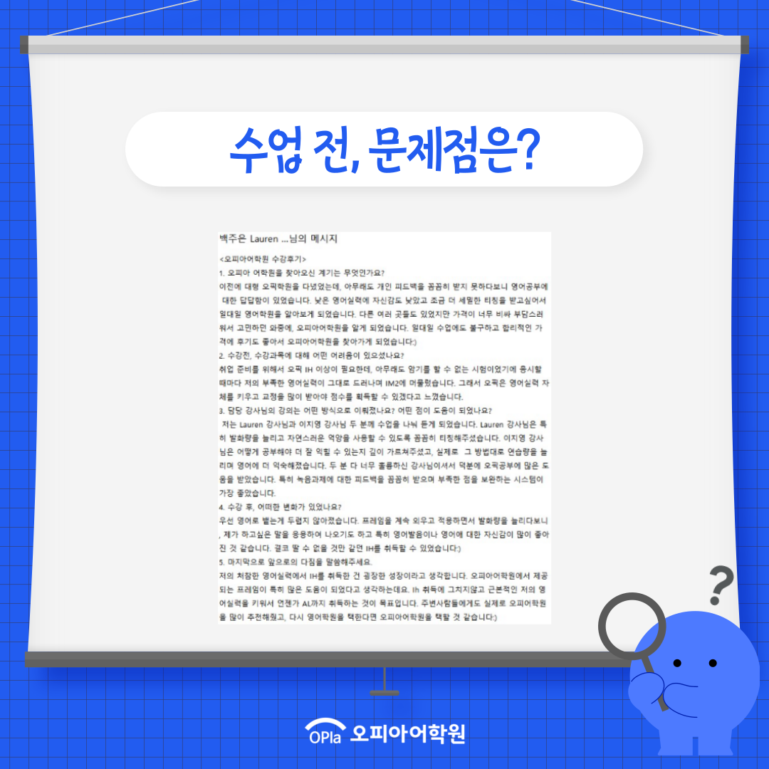 1. 오피아 어학원을 선택하신 계기는 무엇인가요?