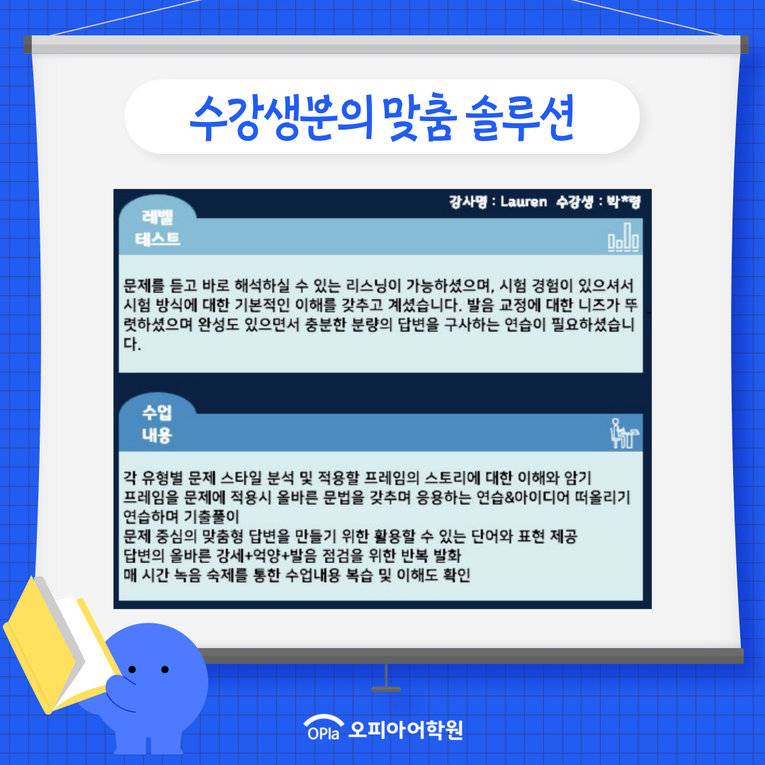 1:1 오픽 맞춤 커리큘럼을 제공합니다.