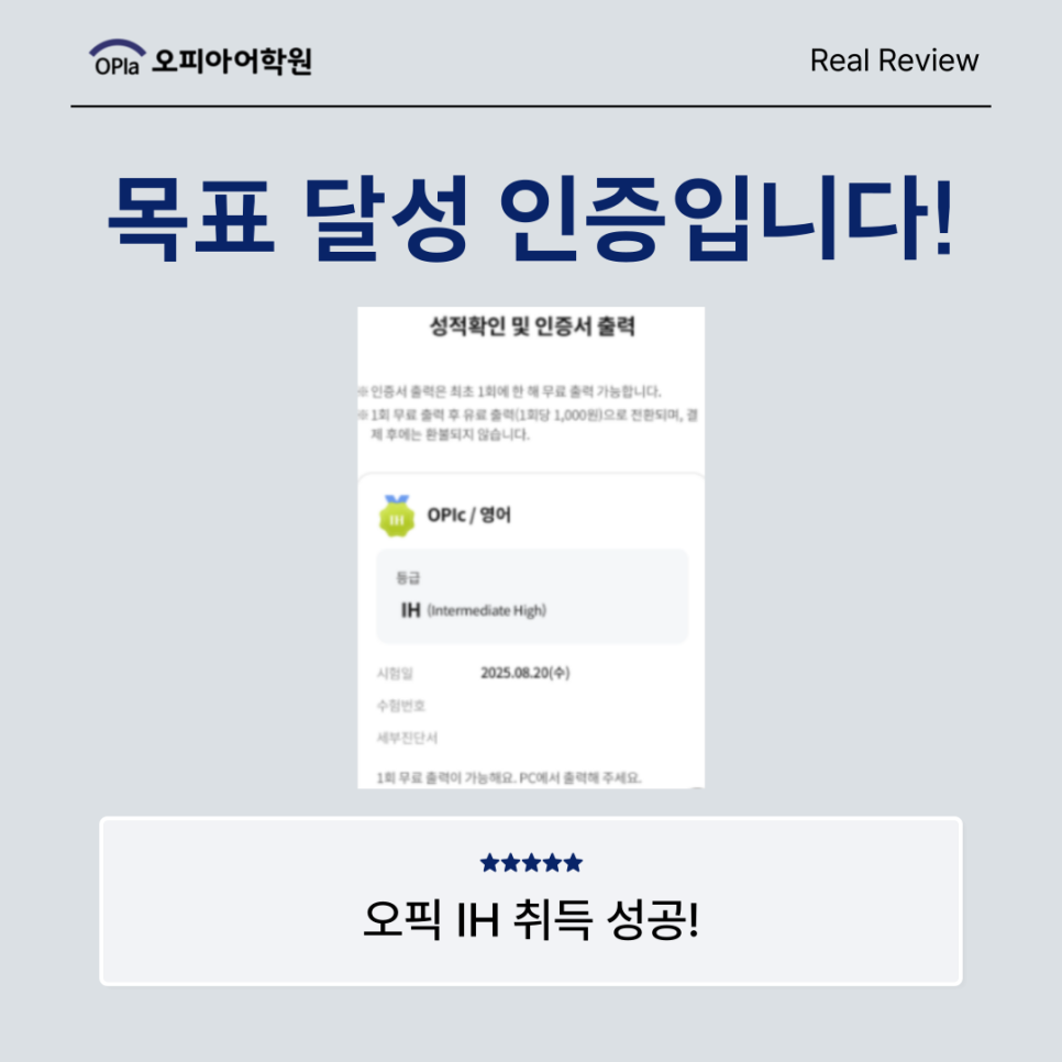 목표했던 오픽 IH 등급을 예상보다 빠르게 달성하신