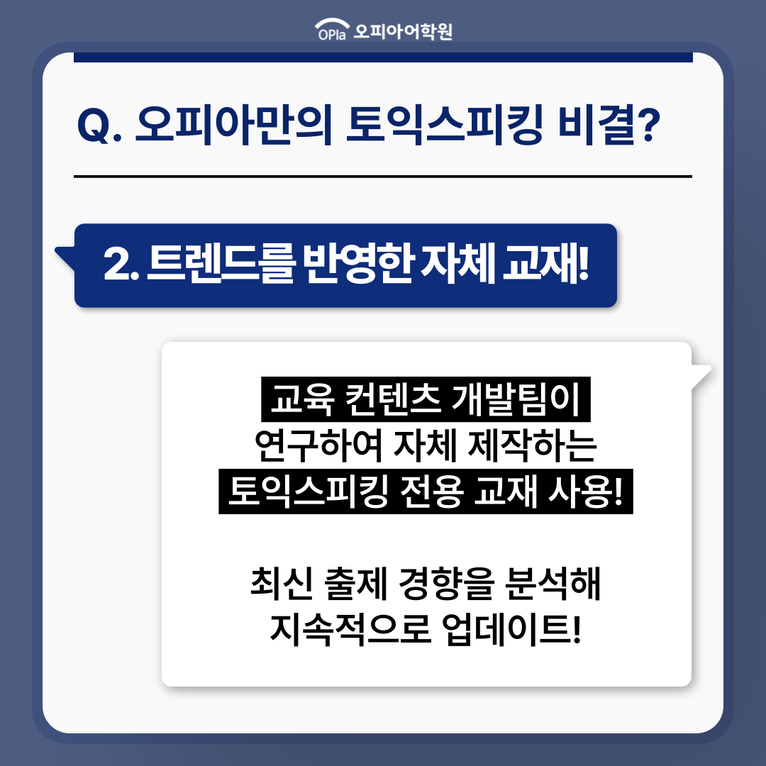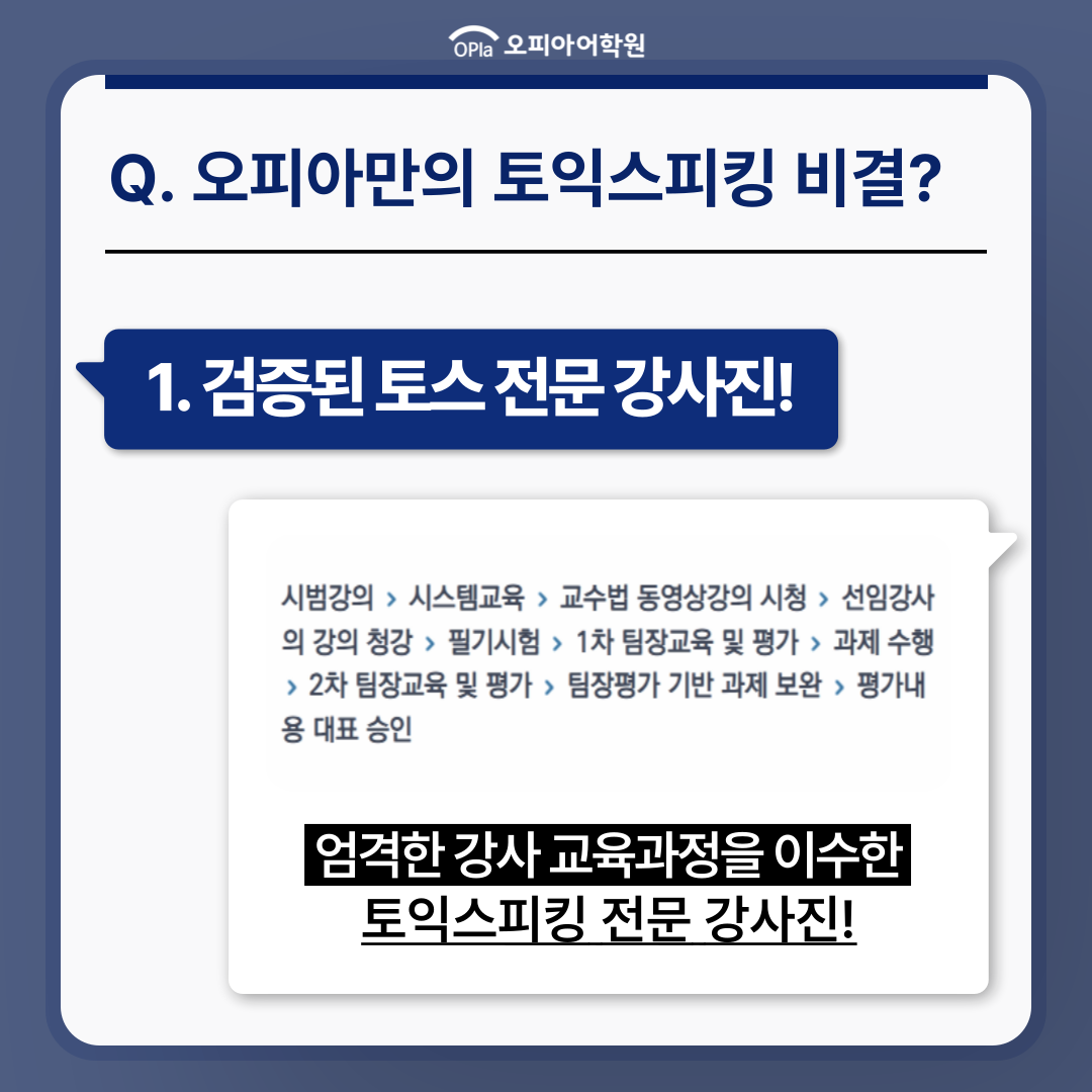 Toeic Speaking 1:1 전문 교육기관, 오피아어학원입니다.