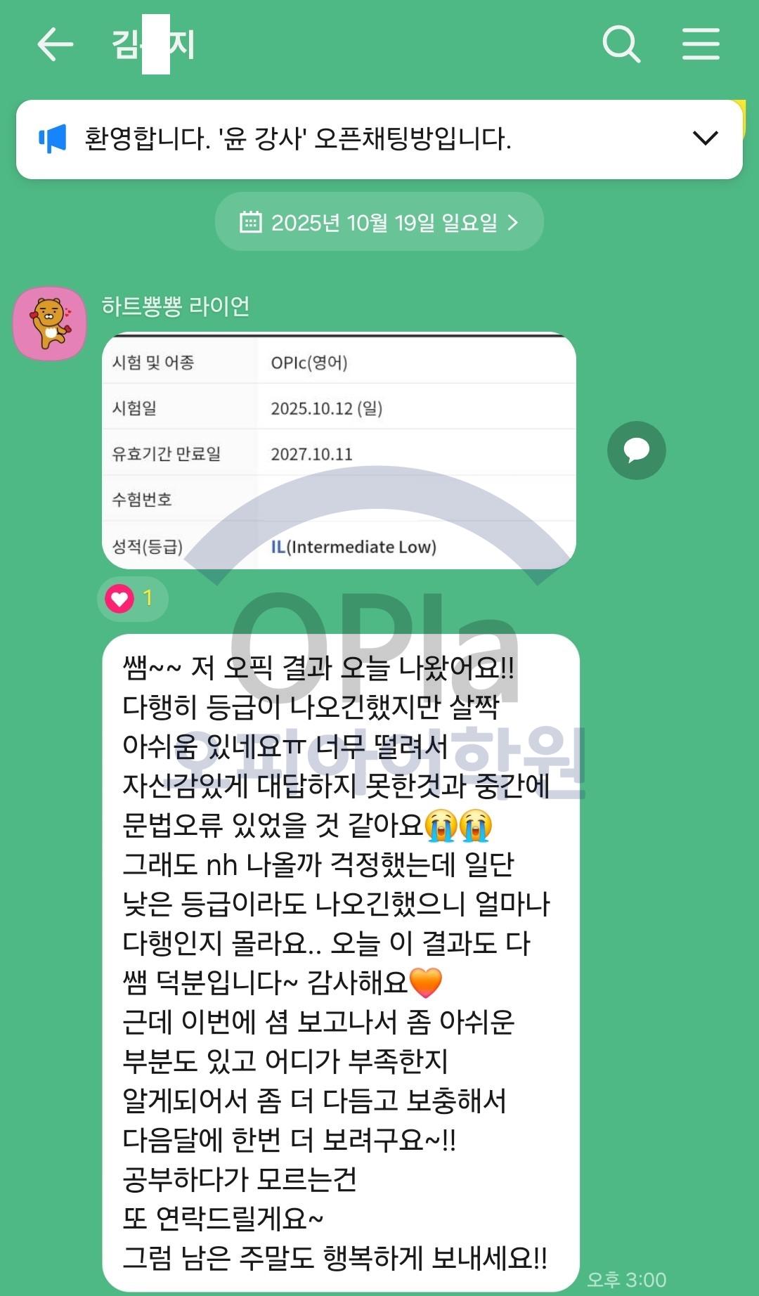 이번 오픽 IL 벼락치기의 성공은 강사님 덕분이라고 생각합니다.