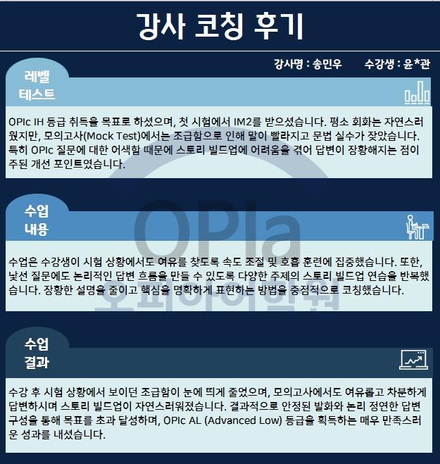강사 코칭 후기 및 오픽 AL 수업 후기