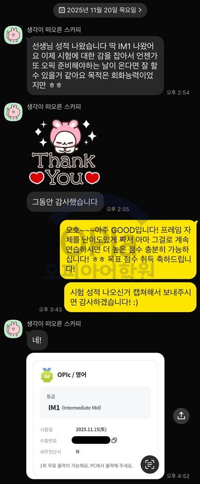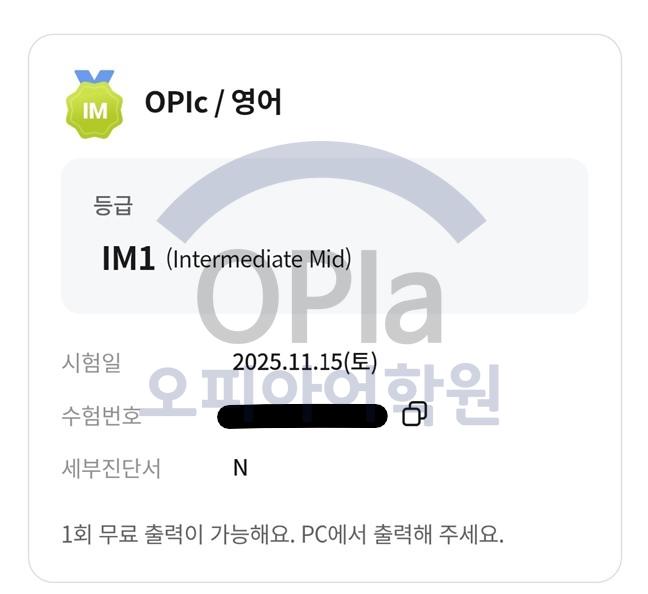 목표했던 OPIc IM1 수준을 드디어 달성했습니다.