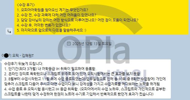 해당 포스팅은 오피아어학원 수강생