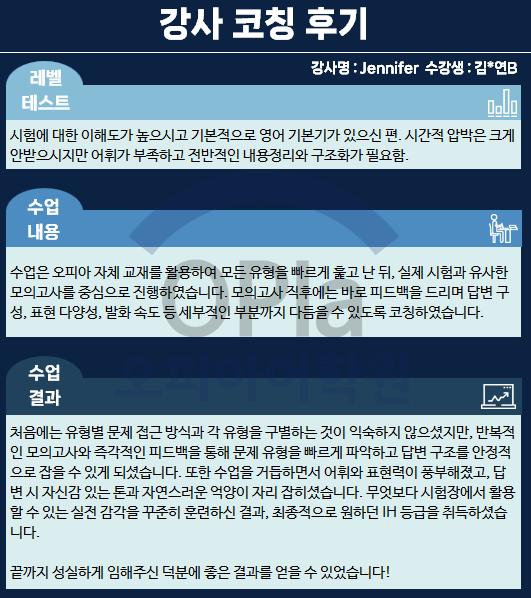 Jennifer 강사님의 꼼꼼하고 성실한 코칭 덕분에