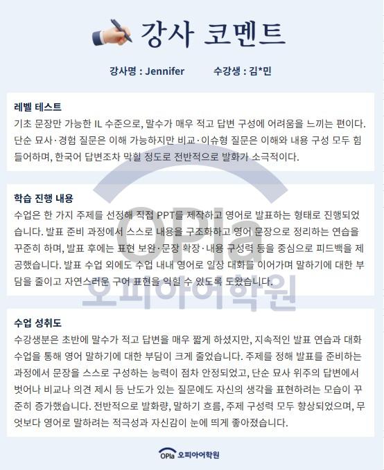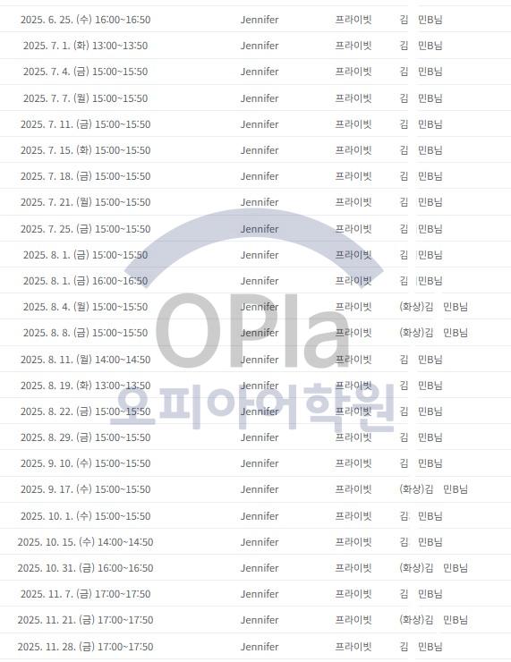 개별 맞춤 코칭이 필요한 분들이라면 오피아어학원의 1:1 수업을 강력히 추천드립니다.