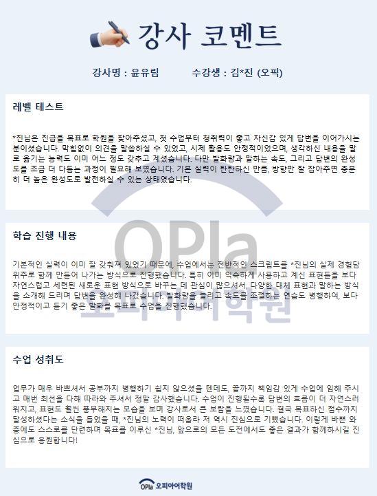 이런 디테일한 코칭과 즉각적인 피드백이 바로 오피아어학원을