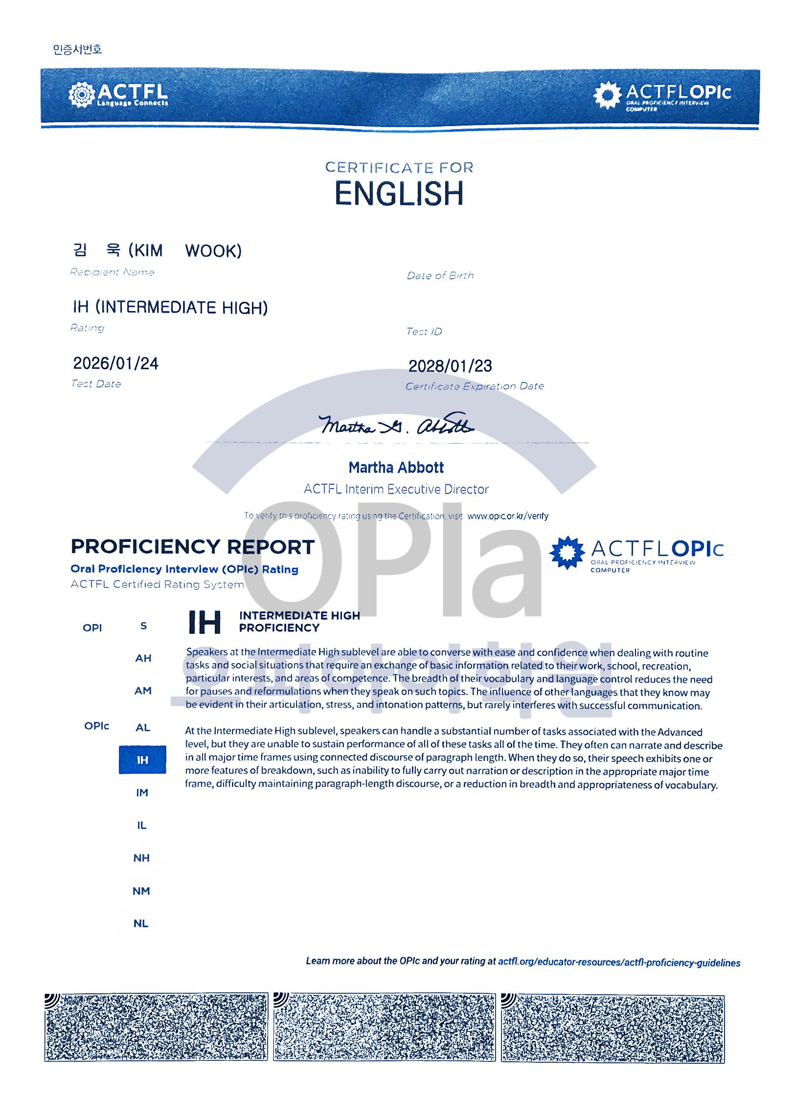 목표했던 오픽 IH 등급을 달성할 수 있었습니다.