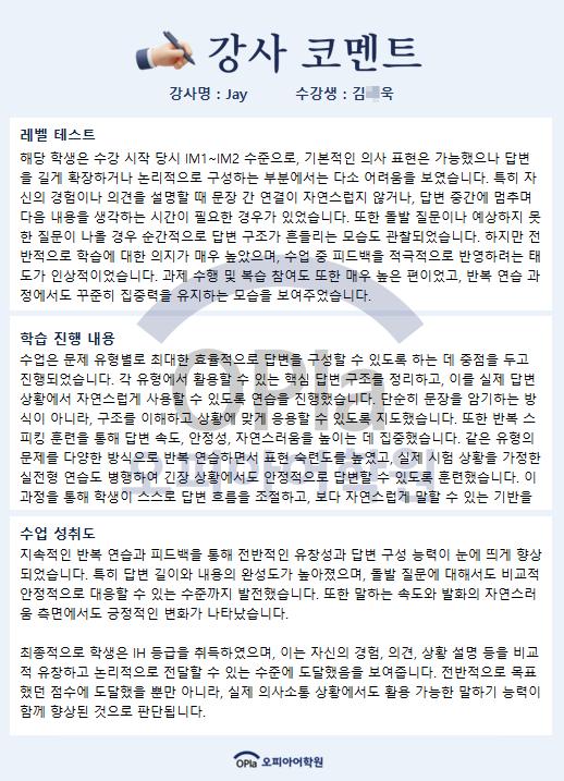 모든 것이 오피아어학원과 Jay 강사님 덕분입니다.