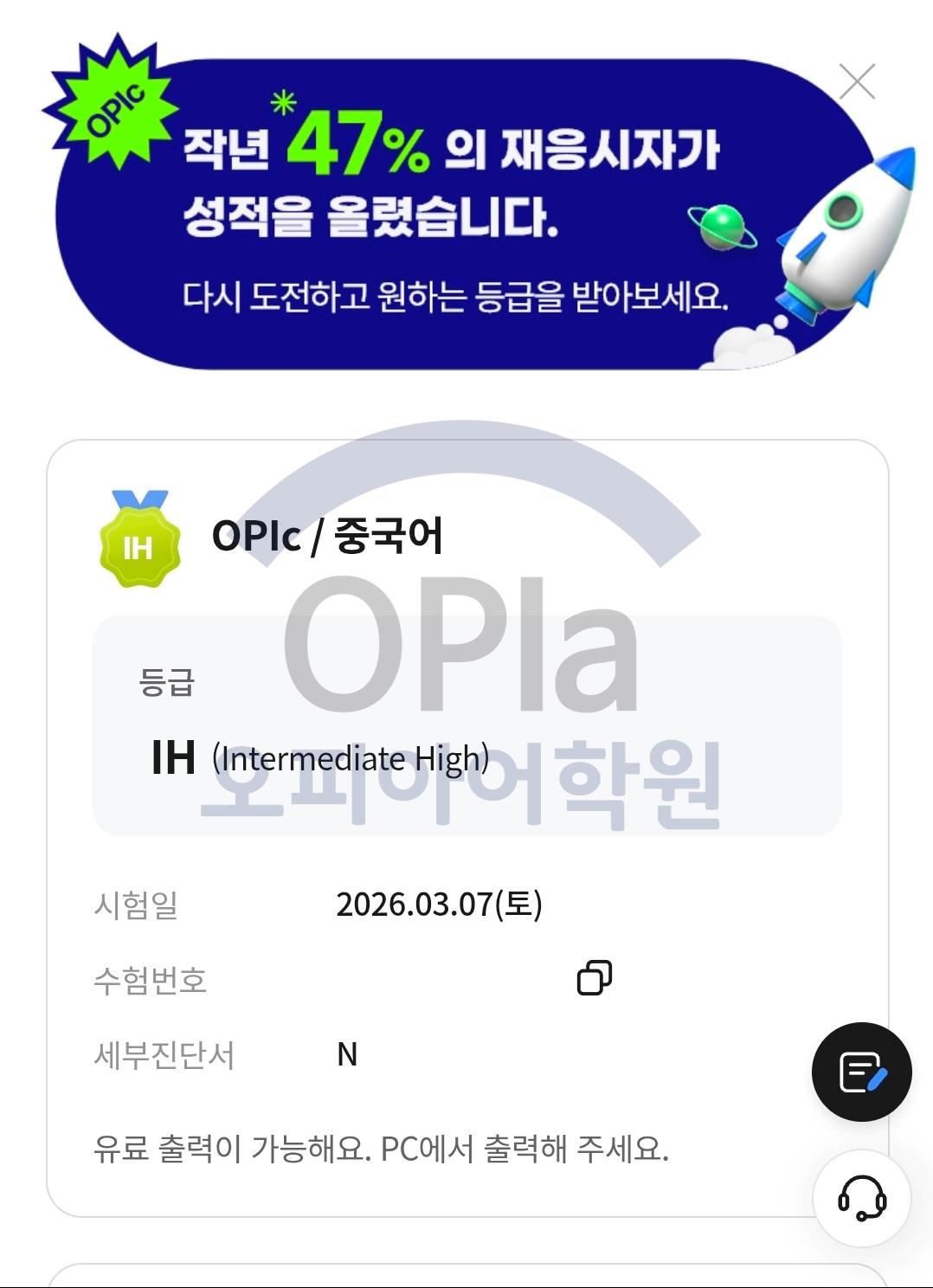 그 결과, 저는 목표했던 중국어 오픽 IH 등급을 당당히 취득할 수 있었습니다.