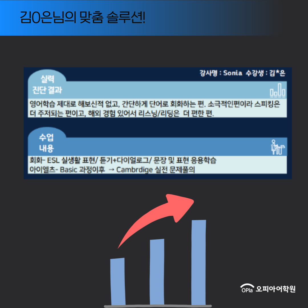 깨닫고 본격적인 공부를 위해 오피아어학원을 찾으셨다고 해요.