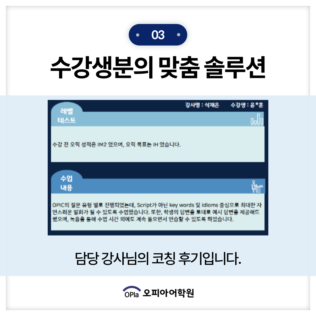 덕분에 목표했던 오픽 등급을 취득했습니다!"