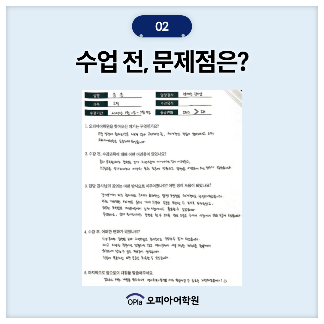 체계적인 학습이 필요하다고 느껴져 오피아어학원을 등록하게 되었습니다."
