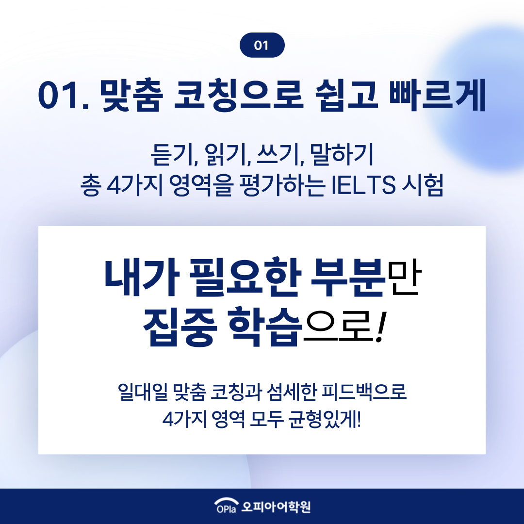수원 아이엘츠 학원 오피아어학원은 1:1 맞춤 코칭과